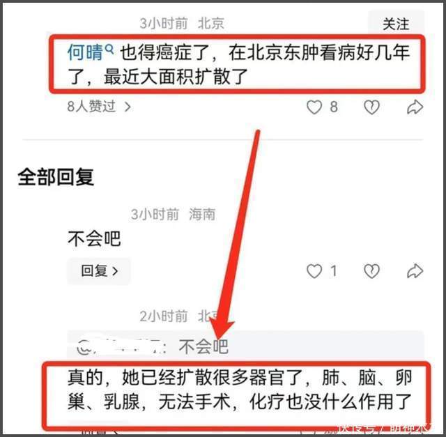 而据爆料,何晴的状态一直没好。在朱媛媛去世的时候,有网友称何晴也得癌症了,且大面积扩散至多器官,肺、脑等,已经无法做手术,化疗也不起作用。